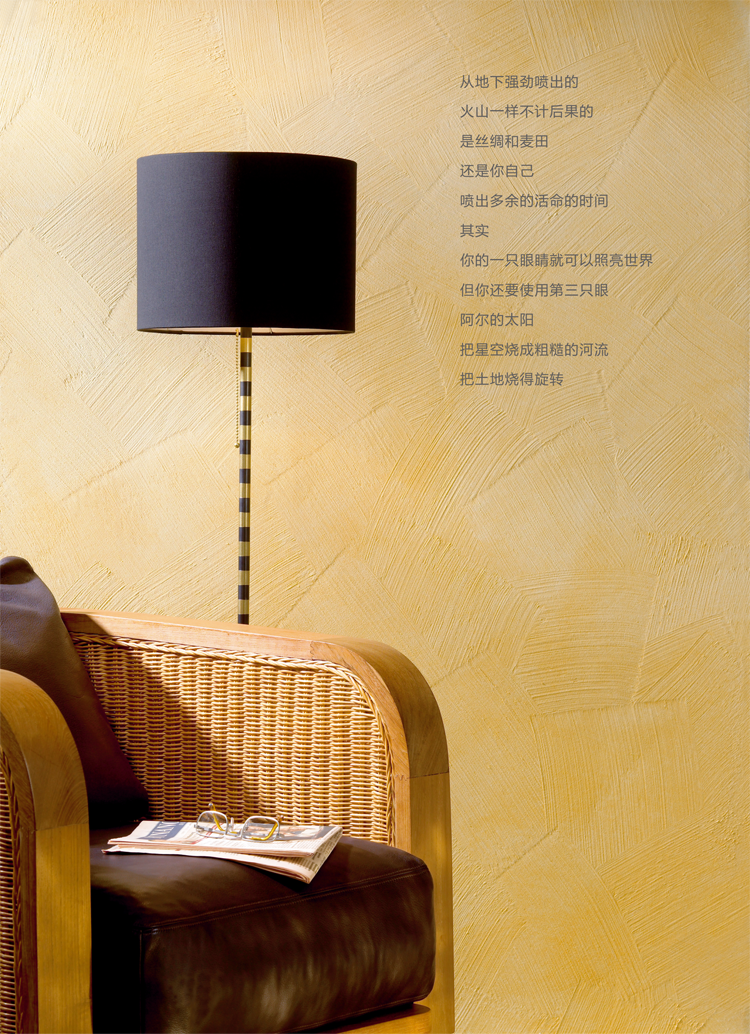 本產品是具有突出的彈張能力的可擦洗水性藝術裝飾漆。產品環保、無毒無味,含有金屬顏料,提供優雅的金、銀顏色變化效果。金銀兩種基漆可用意大利涂之樂“彩色世界”調色系統任意調色。本產品適用于現代家居或娛樂、餐飲場所的高檔裝修裝飾。優雅閃亮的色彩,突顯特殊的藝術美感。