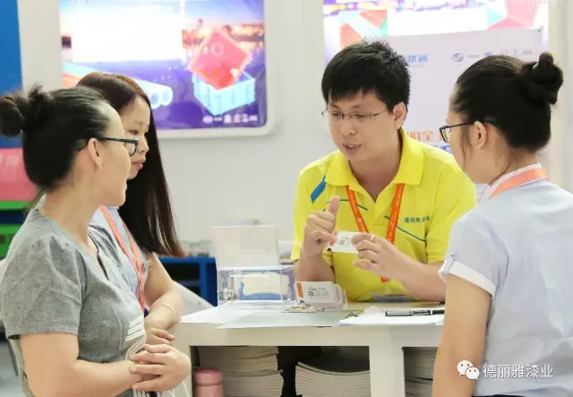 盡管開幕當(dāng)天下著漂泊大雨,展會還是吸引了眾多商戶前來觀展。德麗雅漆業(yè)的展位也是人氣爆棚。