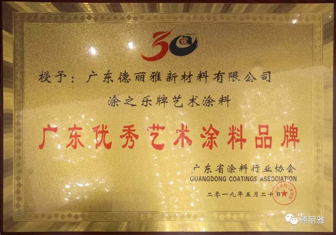 廣東涂料三十年再出發(fā)慶典活動,讓行業(yè)人士歡聚一堂,總結(jié)過去,展望未來,廣東德麗雅新材料有限公司通過不斷的努力奮斗,在工業(yè)涂料和藝術(shù)涂料這兩個細分領(lǐng)域都得到很好的發(fā)展,在全國樹立起了廣東涂料品牌優(yōu)勢,本次大會德麗雅喜獲廣東優(yōu)秀工業(yè)涂料品牌&廣東優(yōu)秀藝術(shù)涂料品牌兩項殊榮。